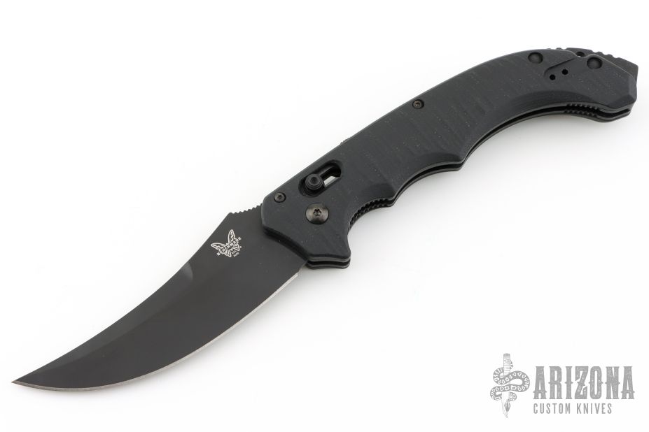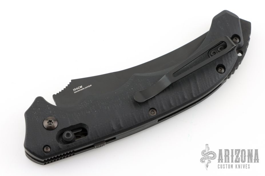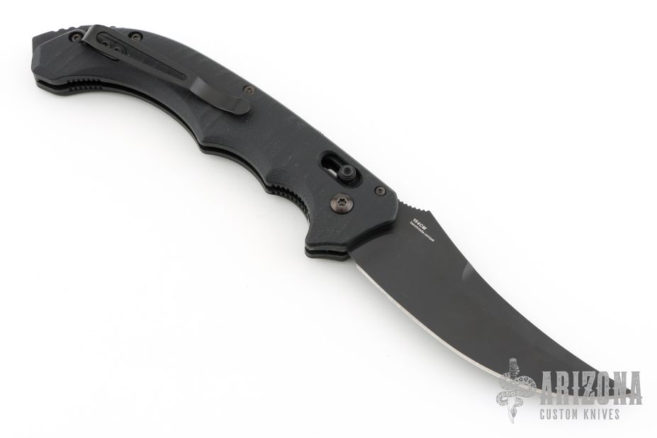 Well-balanced, symmetrical, eye-catching, The Bedlam has a black coated 154CM blade that is released with the AXIS locking button. Safety on top of knife. Sculpted black G10 handle fits comfortably and securely. Reversible tip up black clip. Comes with original box and papers. Excellent condition.