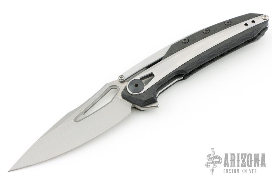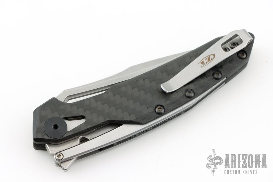This ZT is reliably strong thanks to its steel construction. Other elements pay homage to the original 0999, including an exposed “floating bridge” near the top of the handle, carbon fiber scales with a front steel overlay, and cutout windows in the blade and near the pivot. Instead of a ZT logo on the blade itself, the words “Zero Tolerance” are subtly embossed into the backspacer. The CPM-20CV blade offers excellent edge retention and opens reliably with KVT ball bearings. Includes the original box and papers. Ser 0064. Excellent Condition.