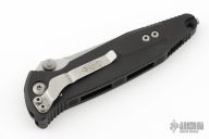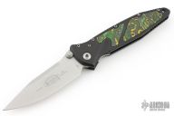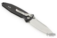 This Socom Elite manual linerlock folder by Microtech Knives has a stonewashed blade with notched thumbrest and dual thumbstuds. Has a black aluminum handle with custom Camo Carbon inlays, tip down blasted stainless steel clip. Serial number 1612 and dated 06/2018. Comes with original box and papers. Excellent condition.