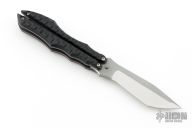This XXX Balisong by James Coogler features a two-tone tanto blade. The handles have black G-10 scales and anodized titanium liners. Has a few light scratches, otherwise excellent condition.