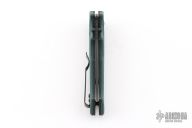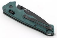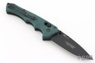 This 615BK-1501 Mini Rukus from Benchmade features a black coated drop point blade with swedge, notched thumb rest and dual thumb studs. The handle is comprised of green G10 over black stainless steel liners and black barrel spacers. Two way tip up carry pocket clip. Features the patented "Axis Lock". Marked "Limited Edition 383 of 1000" on blade. Excellent condition. Consignor mentions that this knife was produced for/from the 2015 SHOT show. Comes with original box and papers.