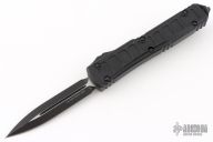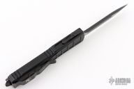 This Ultratech II by Microtech features a black double edged blade. The handle has a black aluminum frame with a "stair step" design for better grip. Stainless steel tip down clip. Dated 11/2021 with s/n 322. Has some scuffs, scratches and wear on the finishes, otherwise good condition.