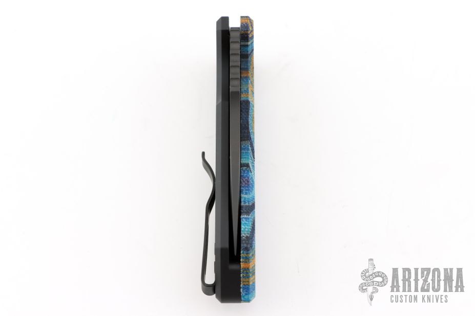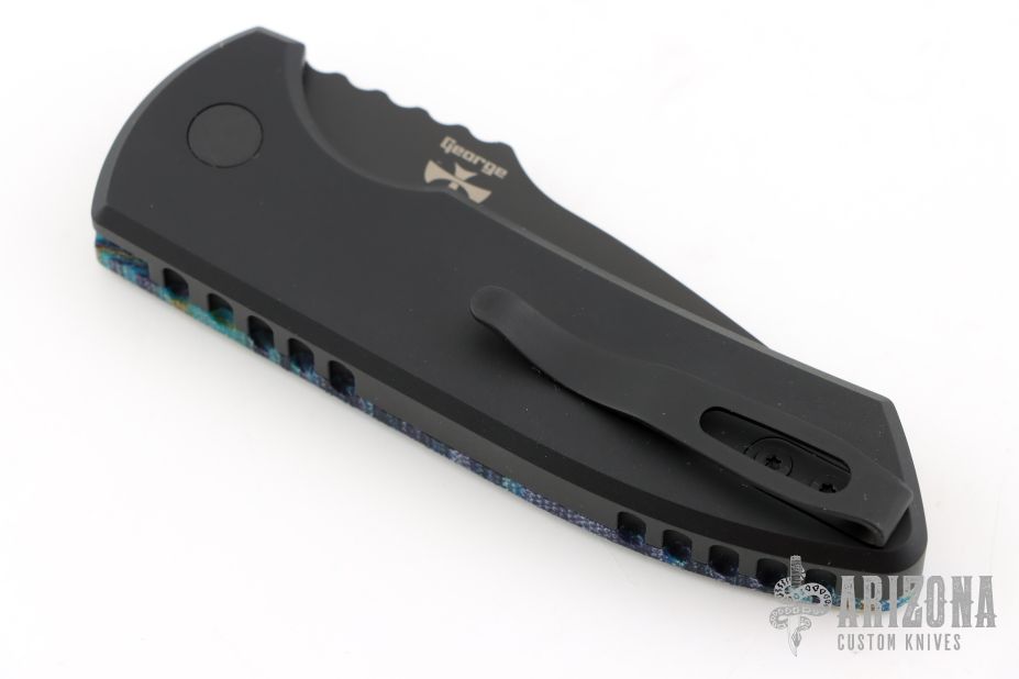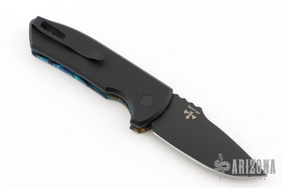 This one has Unique Micarta front and abalone inlaid push button. Comes with original box and papers. New from maker!