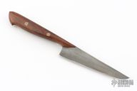 This paring knife from Moriah Cowles of Orchard Steel feature lightly blued and hand rub satin finished blade with .092" blade stock and 1.025" blade depth, full tang construction with walnut scales and mosaic pins. Has been lightly used, has some patina and light scuffs, otherwise good condition.
