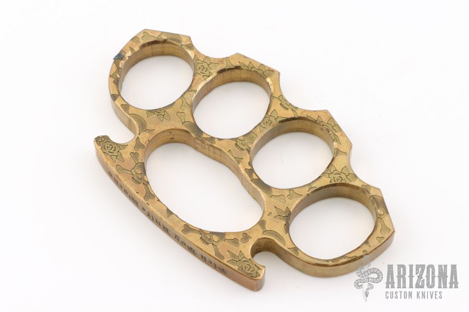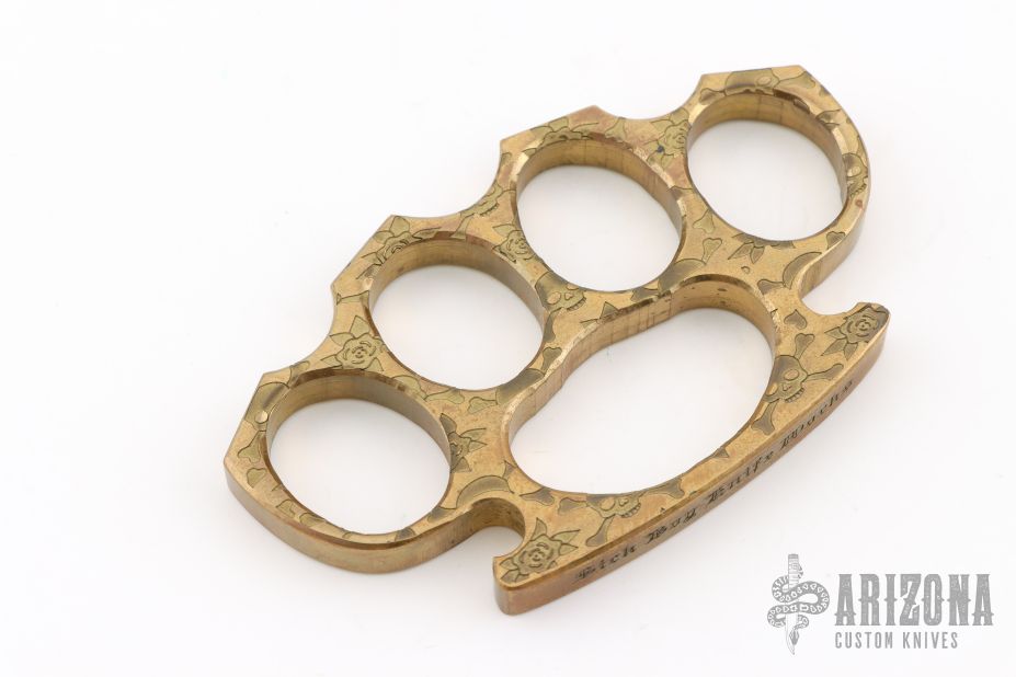 Custom One Off Brass Knuckles by Sick Boy Knife Works. .392" thick and 4.75" long. Has some light patina, otherwise excellent condition.