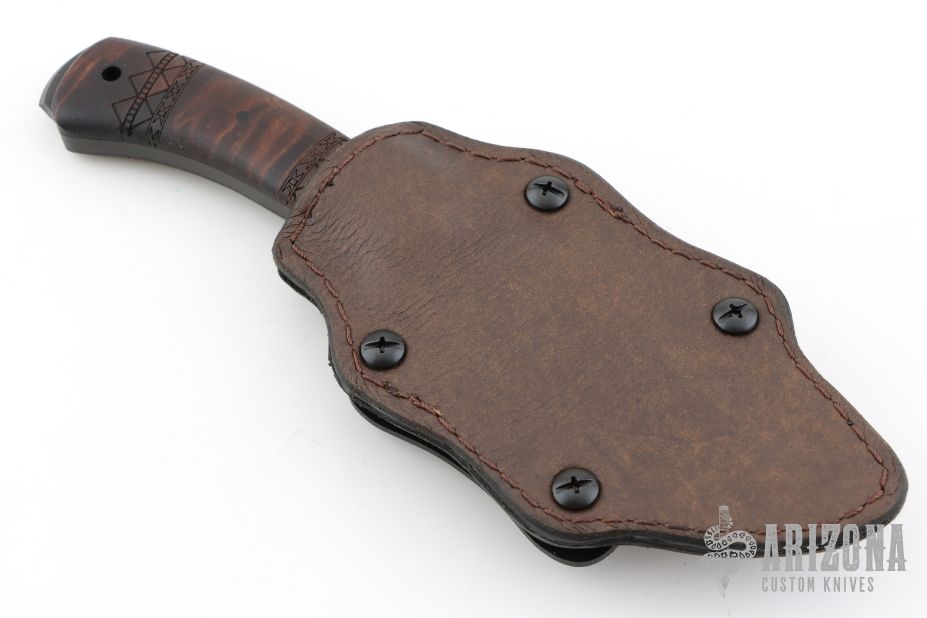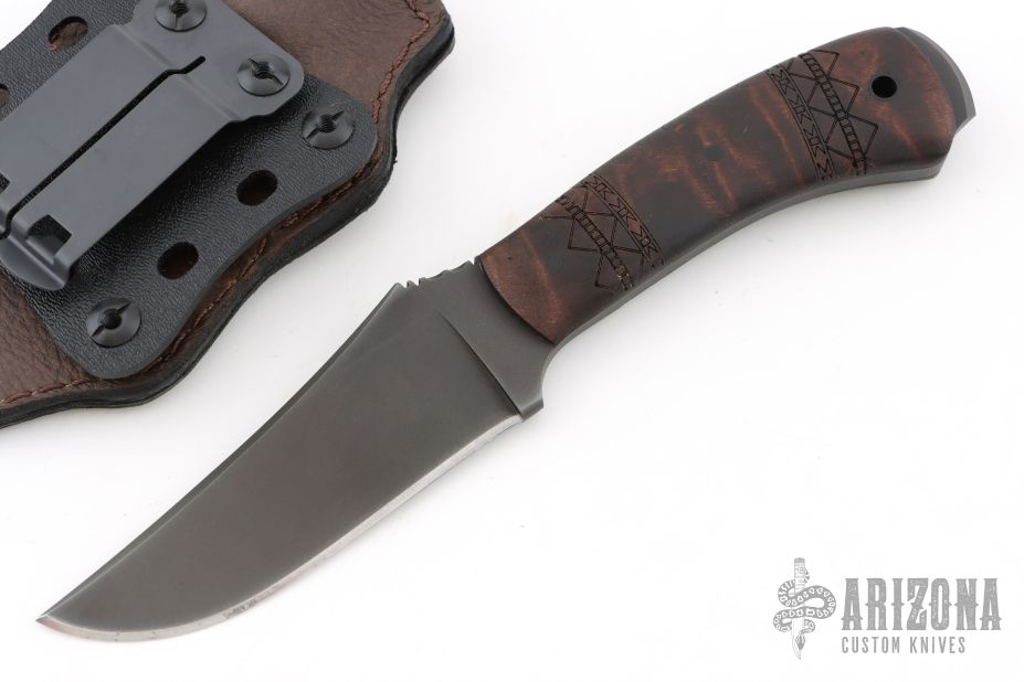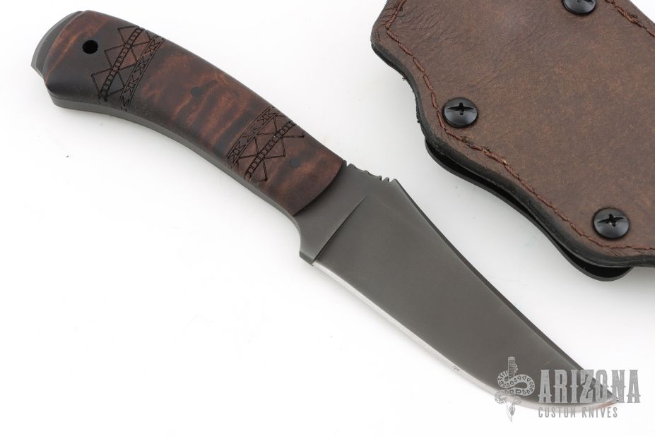 All the versatility of the famed WK Belt Knife but with a smaller profile. It is well suited to processing game and most everyday cutting chores. Knife Specifications Blade steel: 80CrV2 Black oxide no-glare finish Blade length: 4" Overall length: 8" Blade thickness: .189" Skeletonized full tang Thumb index file work Sheath Lined Kydex® with leather cover Designed for multiple carry options. Comes with original packaging and Kydex/leather sheath. Excellent condition.