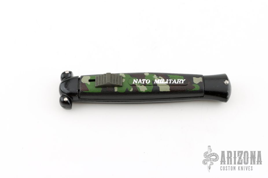 NATO Military OTF Auto. Comes with original box. Has some minor wear on the handle, otherwise good condition.