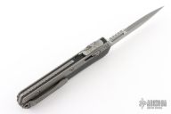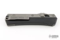 This Glykon by Microtech features a stonewashed double edged blade with fullers and notched thumbrest. The handle has a black aluminum chassis with bead blasted titanium overlays and tip down clip. Dated 05/2023. Has a few light scratches, excellent condition otherwise.