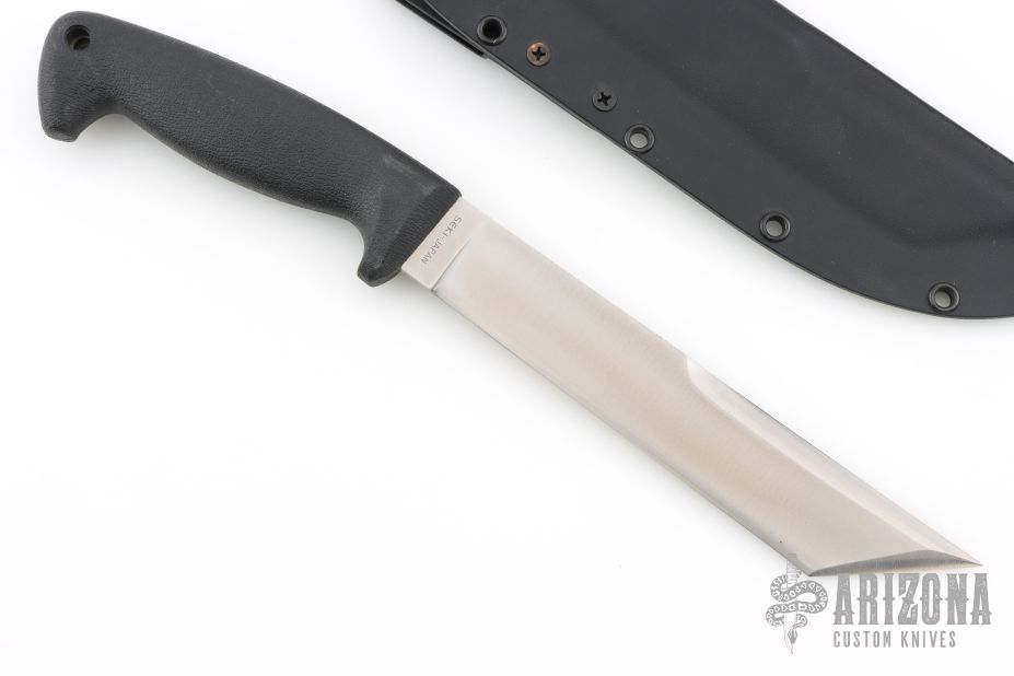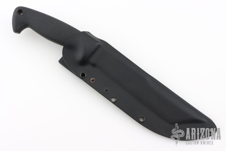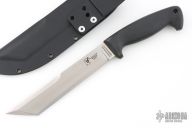 This Warrior by Blackjack Knives was made in Greenville, WV. It features a satin finished blade with a sharpened top edge, .183" blade stock and 1.326" blade depth, hidden tang construction with a rubber grip. Comes with a Kydex sheath with belt loop. Excellent condition.