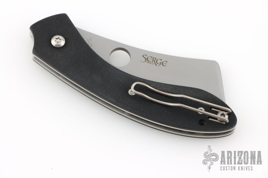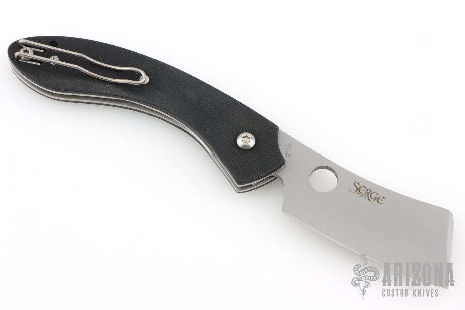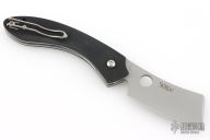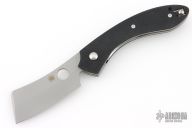 This C177G ROC from Spyderco is a Serge Panchenko design, it features a bead blasted cleaver style blade with thumb hole and notched thumbrest. The handle is comprised of black G10 scales over steel liners and standoffs. Reversible tip up carry pocket clip. Excellent condition. Comes with original box and papers.