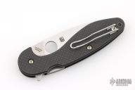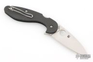 This Silverax Pln by Spyderco features a satin finished blade with thumbhole and flipper. The handle has black G-10 scales with stainless steel inlaid liners, tip up reversible stainless steel clip. Comes with original box and papers. Excellent condition.