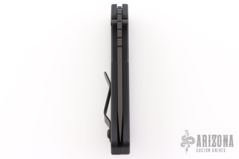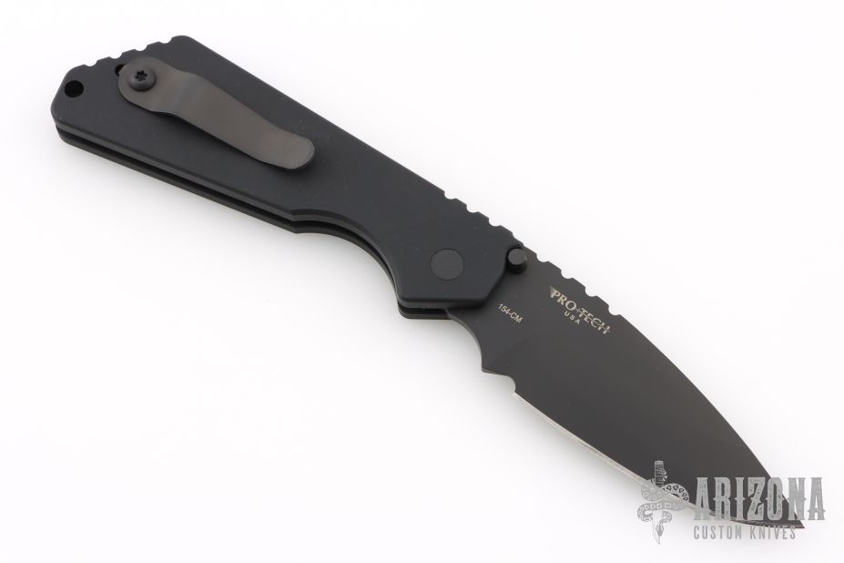 This Pro-Strider SNG by Pro-Tech and Strider Knives features a black blade with notched thumb rest. The handle has a black aluminum frame with black hardware and black stainless steel tip up clip. Comes in original box with pouch and papers. Excellent condition.