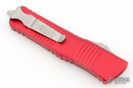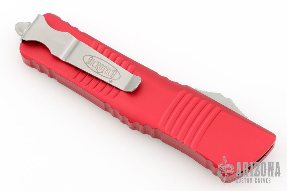 This Combat Troodon OTF automatic features a satin finish D/E blade with a fully serrated edge and a red aluminum frame. Stainless steel clip. Glass breaker. Serial number of 38003 and dated 04/2022. Comes with original box. Excellent condition.