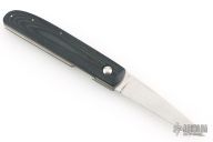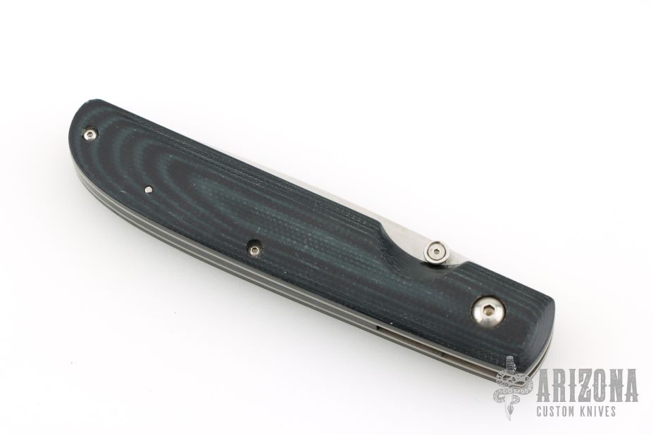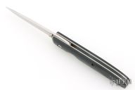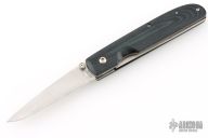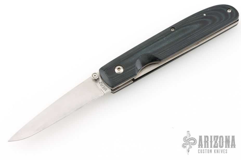This Linerlock by Robert Merz features a hand rub satin finished blade with single thumbstud. The handle has black G-10 covers, titanium liners and a black G-10 backspacer. Nice detent, lockup and blade seating. Has some light scratches, otherwise good condition.