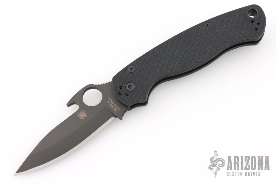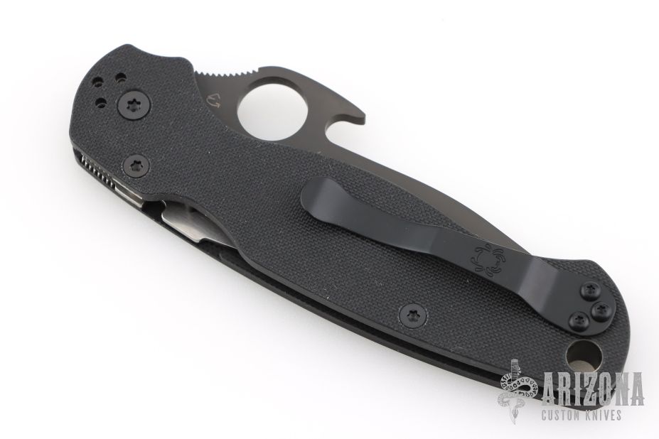 This Paramilitary 2 Linerlock Folder from Spyderco has a black finished clip point blade with thumbhole, Emerson's Wave Feature and notched thumbrest. Handle is black G-10 with stainless steel liners and stainless steel 4-way reversible clip. Comes with original box and papers. New condition.