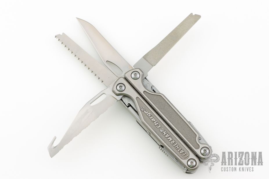 The Leatherman Charge XTI tool is a full-size multitool with pliers, wire cutters and a generous set of blades and tools, housed in a tough titanium alloy body. The Charge is pretty much a luxury version of the popular Wave, with blades that fold out even when the pliers are closed. This model was introduced in 2004, and replaced by the Charge TTI in 2008.