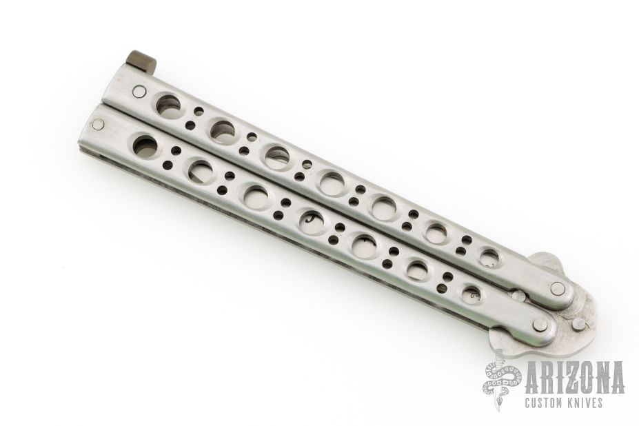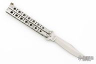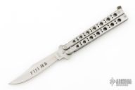 This Fji Balisong by Valor has a satin finished blade. Stainless steel handles with brass T-latch. Comes with original box. Has some light scratches, otherwise excellent condition.