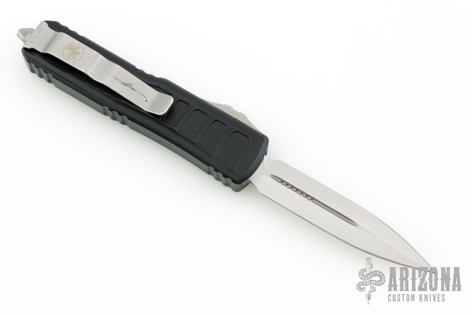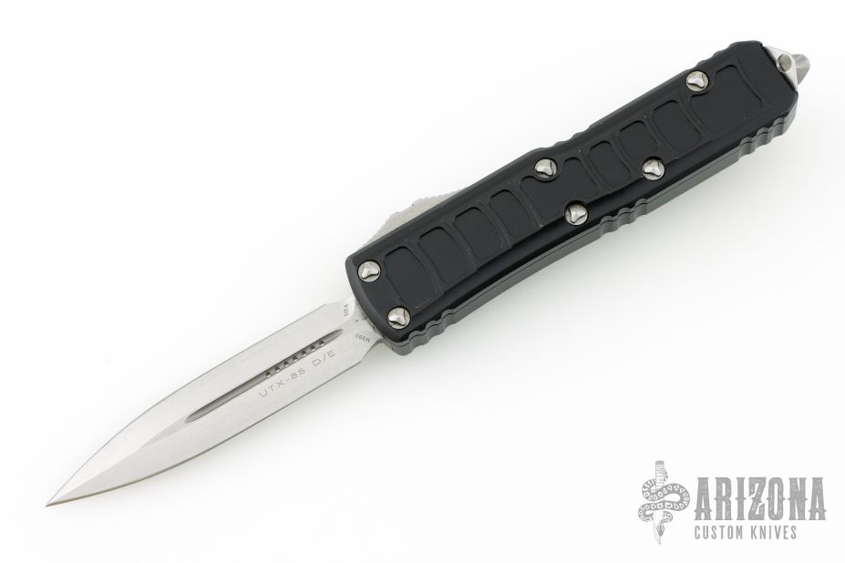 The Microtech UTX-85 OTF knife is the perfect combination of compact size and big performance. At 85% the size of the Ultratech, the Microtech UTX-85 is manufactured with the same materials, on the same machines, and with the same ingenuity as its predecessor. The Microtech UTX-85 is the perfect knife for all situations--no matter what your cutting task; it will mesh seamlessly with your lifestyle. This UTX-85 II has improved handle texturing for a more positive purchase. With its quick one-handed open and close action, it gets the job done in seconds. Equipped with an ambidextrous pocket clip and compact size, this is the perfect choice for everyday use and carry.