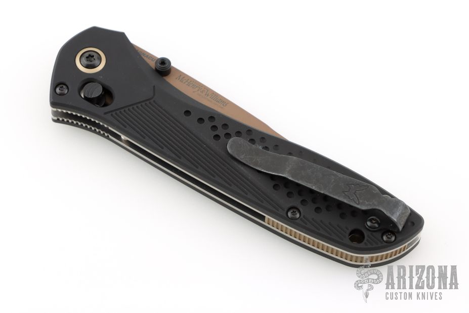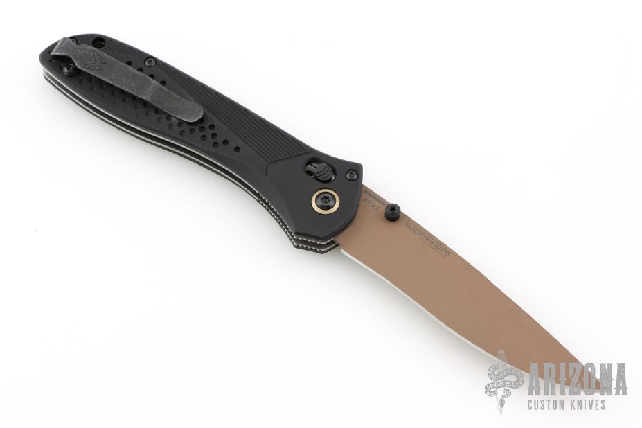 When Benchmade's AXIS® lock technology was released on the original 710 back in 1999, it didn't send ripples through the knife industry, but rather: rogue waves. The innovative AXIS® lock changed the game -all thanks to the designer duo Benchmade collaborated with on the invention, Bill McHenry and Jason Williams, renowned custom knifemakers with watchmaking roots. The sleek, new 710FE-2401 is a testament to McHenry and Williams' craftwork. Celebrating the 25th Anniversary of AXIS® lock technology, the 710FE-2401 has the same large frame and ample cutting power of the original 710 and features a stylish, drop-point, recurve blade made of mighty CPM-Magnacut steel with an FDE PVD finish. The 710FE-2401 has a lightweight Aluminum handle with milled black anodized finish, and milled stainless steel with FDE PVD backspacer and pivot ring and black oxide thumb stud. Our Limited anniversary variant, inspired by its original designers.