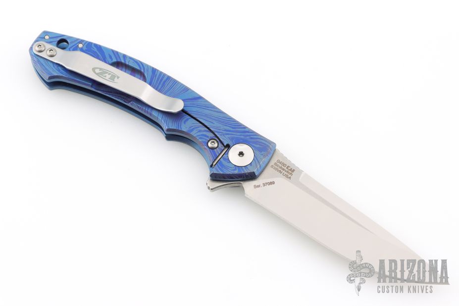 This 0450 Sinkevich designed folder from Zero Tolerance features a drop point blade with swedge and flipper. The handle is comprised of an anodized and laser engraved titanium frame over red anodized aluminum stand offs, stainless steel pocket clip. Comes with original box and papers. Excellent condition. #37089