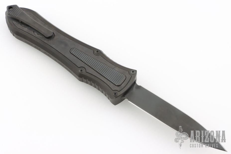 This knife is a Deadlock Model C by Grant and Gavin Hawk. It has a double-edged blade. The handle has a Fat Carbon inlays in the DLC titanium frame with a tip down spring clip, titanium. The thumb slide on the handle is also DLC titanium. Comes with original zippered case, tool and card. Grant and Gavin Hawk set out to create a double action OTF with no blade play.... They did it, NO blade play. New from maker at the 2025 Blade West!