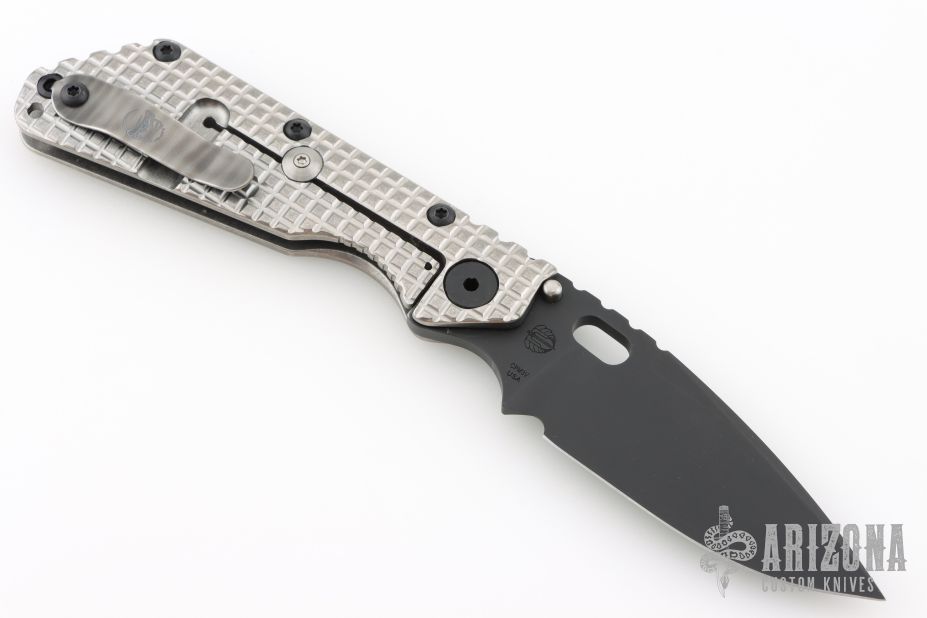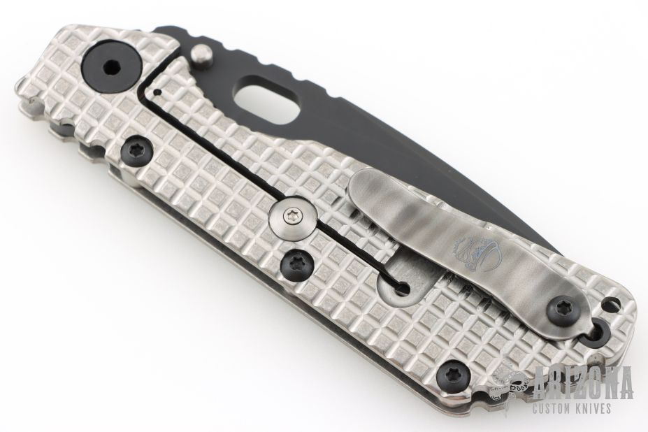 This SMF framelock folder by Mick Strider features a black blade and a Monkey Edge frag pattern stonewashed titanium frame and flamed tip up titanium clip. Includes a "Lock Bar Stabilizer" for maximum reverse lock retention. Nice detent, lockup and blade seating. Excellent condition.