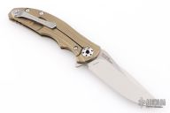 This 0609 RJ Martin flipper by Zero Tolerance features a satin finished blade with stonewashed flats, notched thumbrest and flipper. The handle has a milled and anodized titanium frame with a tip up reversible stainless steel clip. Rides on bearings, nice detent, lockup and blade seating. S/N 6314. Comes with original box and papers.  Excellent condition.