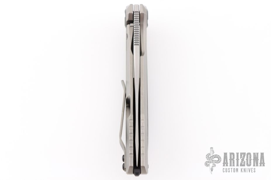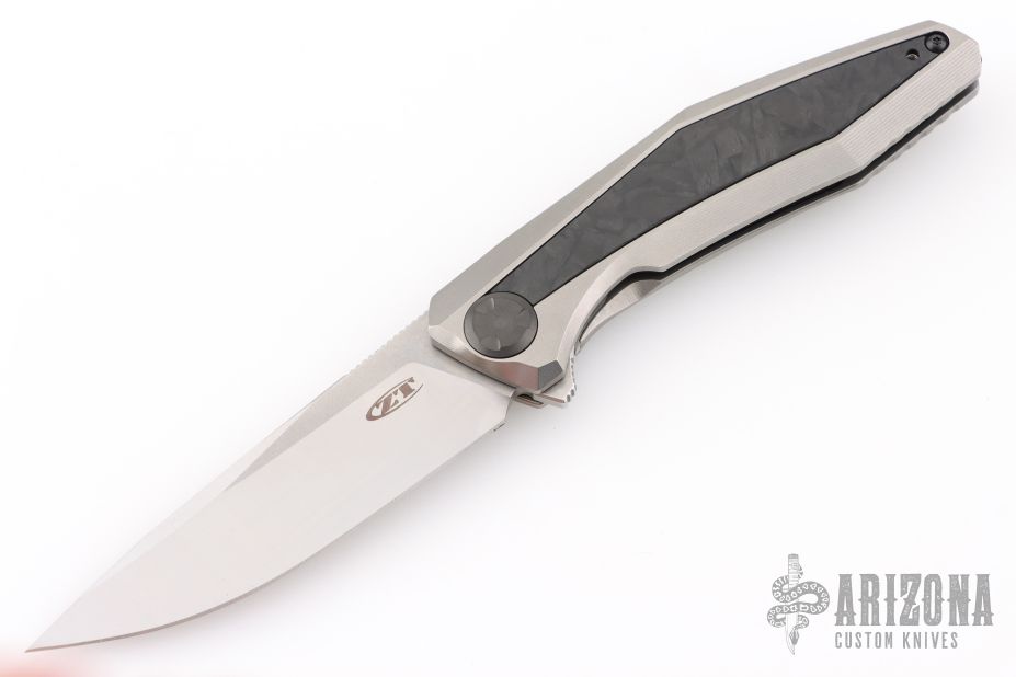 This 0470 Sinkevich designed folder from Zero Tolerance features a drop point blade with swedge. The frame is comprised of tumble finished titanium, a marbled carbon fiber inlay and anodized aluminum back spacers. Titanium pocket clip can be adjusted for left or right hand carry. #4927. Comes with original box and papers. Excellent condition.