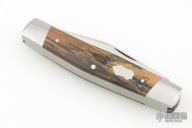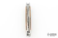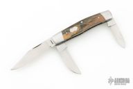 This slipjoint by Jim Dunlap features 3 hand rub satin finished blades with nail nicks. The handle has stainless steel bolsters with integral liners, mammoth ivory covers, stainless steel liners, stainless steel springs. Has half-stops, flush in all positions. Comes with maker's zippered case and COA. Excellent condition.