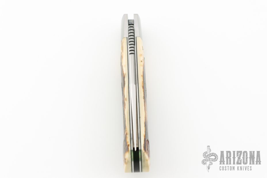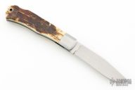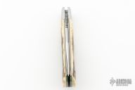 This Lockback by Bill Ruple features a hand rub satin finished blade with a nail nick and notched thumbrest. The handle has pinched stainless steel bolsters and liners, bark mammoth ivory covers with a stainless steel bullet escutcheon, stainless steel spring. Includes maker's padded zippered case. New from maker at the 2025 Blade Show West!