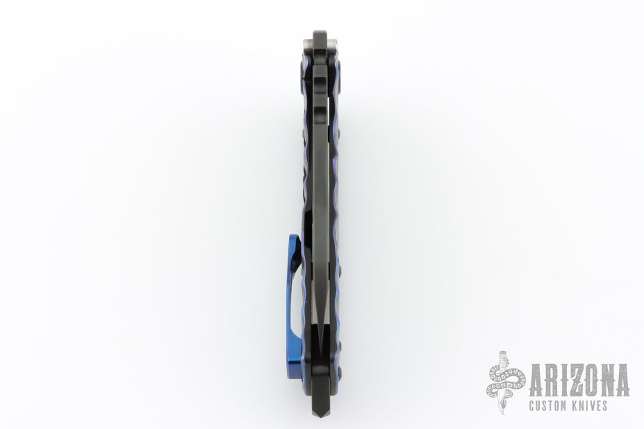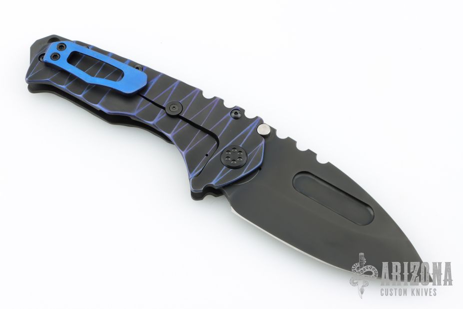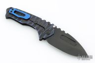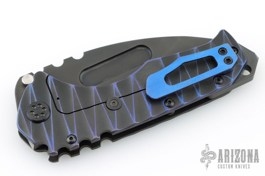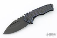 The Praetorian is a Marquee knife. It is a TON of blade in a relatively small package. This design incorporates aerospace materials, space age coatings, old school metallurgy, thoughtful design and hand craftsmanship that is rare but alive and strong in this modern world. This knife features a PVD finished drop point blade. This particular knife features an anodized "Lightning" textured titanium frame, titanium scales, all titanium hardware, and titanium clip. Comes with hard case, original box and COA dated September 26, 2022. Excellent condition.