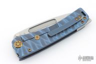 This Marauder from Medford Knife and Tool features a tumble finished blade with fullers. The handle has a "Sand Dunes" textured and anodized titanium frame over a steel backspacer and titanium tip up clip. Includes original box, hard case and COA dated December 07, 2022.  Excellent Condition.