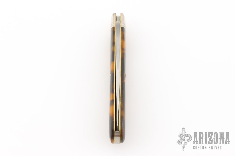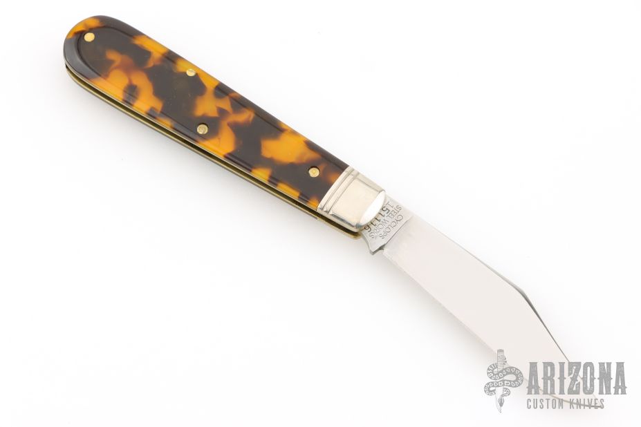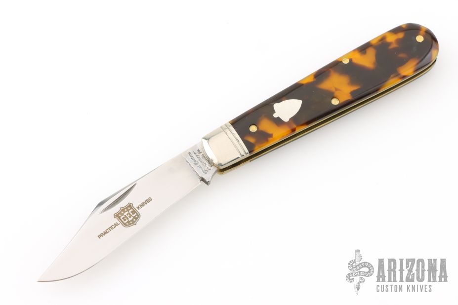 This slipjoint by Great Eastern Cutlery features a satin finished clip point blade with a nail nick. The handle has nickel silver bolsters, tortoise shell acrylic overs. Has half stop. Comes with original tube. Excellent condition. 103 made