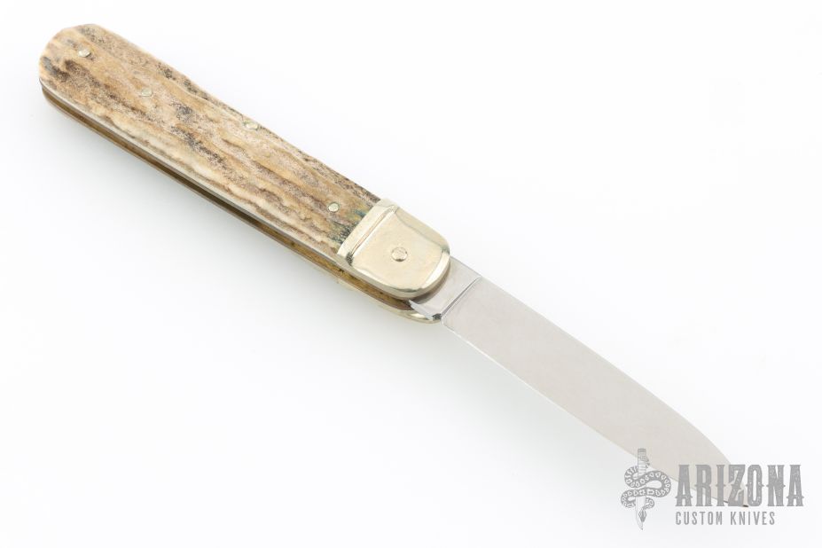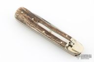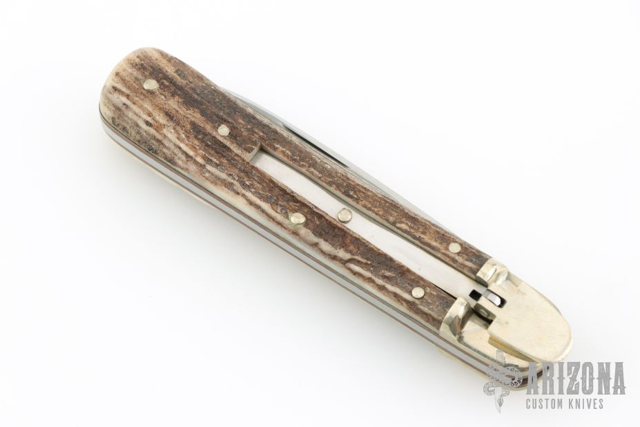 This lever lock auto by Boker features a drop point blade, nickel silver bolsters, stag scales, brass liners and stainless steel backspacer. Has a couple light scratches, otherwise excellent condition. Comes with original box.