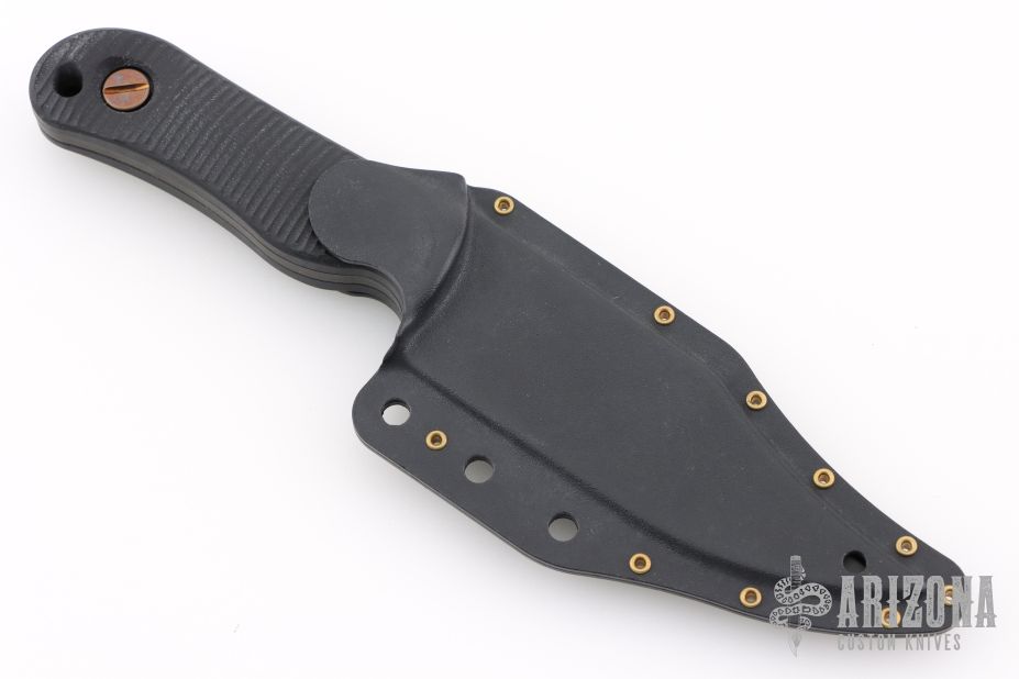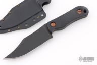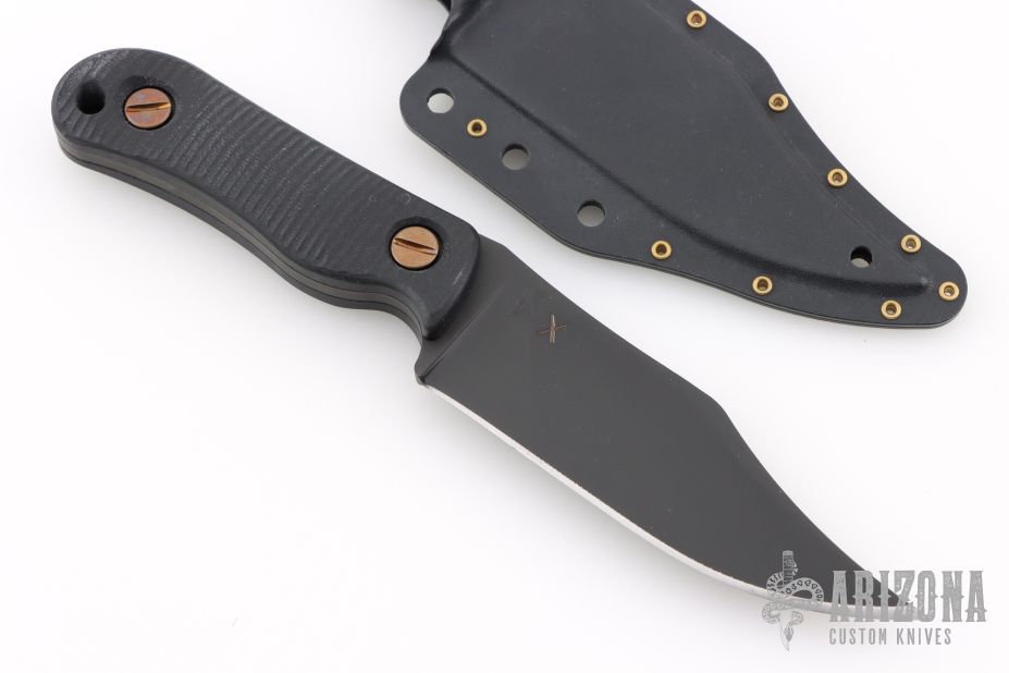 This Jackalope XL by Turner CNC features a DLC finish blade, .156" blade stock and 1.207" blade depth with full tang construction. The handle has a milled black g10 scales. Comes with original kydex sheath.