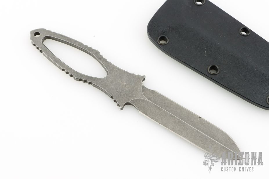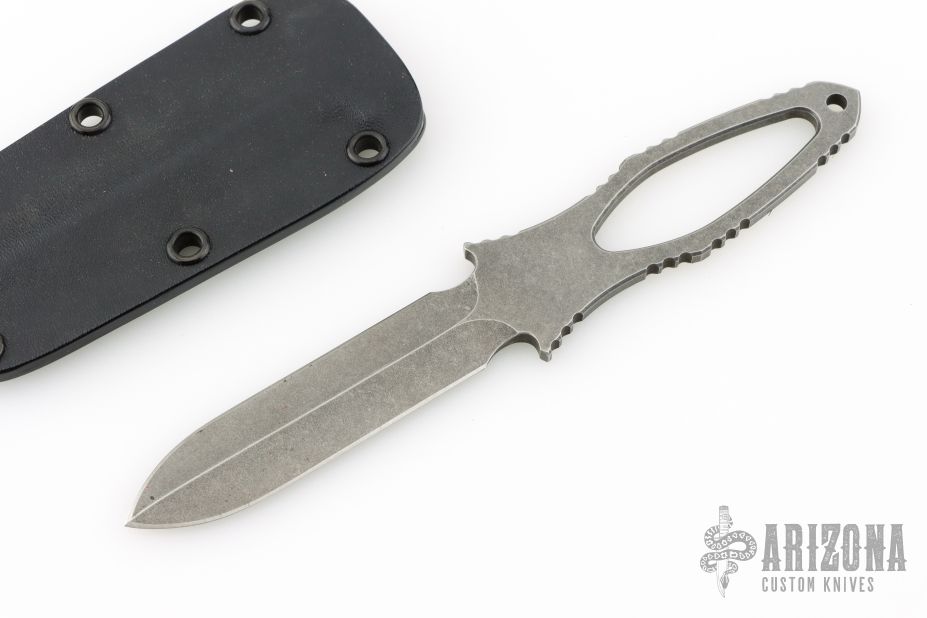 This custom Dagger by Neil Blackwood and Jim Burke features a stonewashed blade with .176" blade stock and .867" blade depth, full tang construction. Comes with a Kydex neck sheath. Excellent condition.