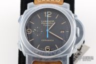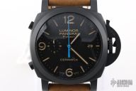 The material of the Luminor 1950 case, 44 mm in diameter, is a synthetic ceramic based on zirconium oxide, which is up to five times harder than steel but substantially lighter in weight, as well as exceptionally resistant to scratches, corrosive agents and high temperatures.