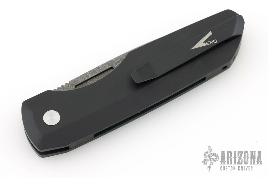 This Synapse by Pro-Tech is a Vero Engineering design. It has a Damascus blade with notched thumbrest. The handle has a blue linen micarta and black aluminum frame, pearl inlaid push button, tip up black titanium clip with hidden screws. Comes with original box, pouch, and papers. New from maker at the 2025 Blade Show West!