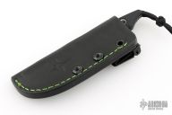 This Kobold fixed by Heretic Knives features a Bowie DLC clip point blade with notched thumb rest, fullers, partial serrations, .1" Blade stock, 1.064" Blade depth with full tang construction. The handle is comprised of black G10 covers with lanyard bail in pommel. Comes with original box, leather sheath and ulticlip. S/N 00300. New from maker at the 2025 Blade Show West!