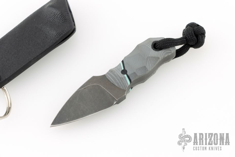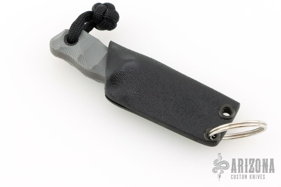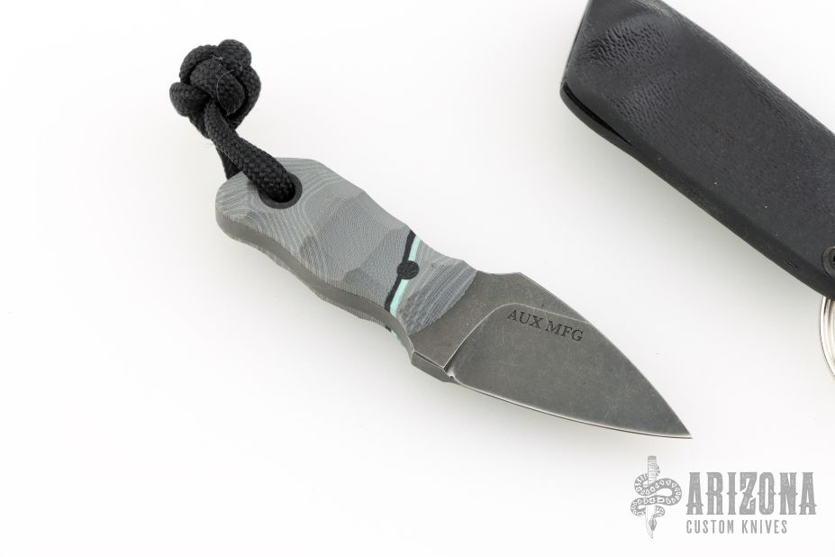 This Pocket Lint by Auxiliary Manufacturing features an acid-tumbled drop point blade with .195" blade stock and .770" blade depth. The handle has gray G10 scales with pinstripe. Comes with original box, and a kydex sheath with split ring. New from maker!