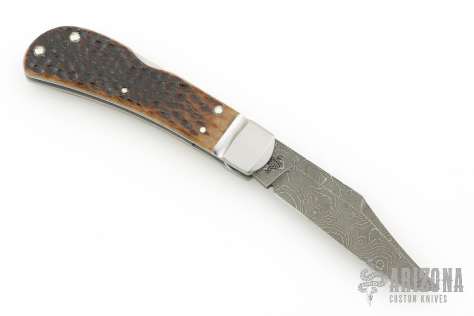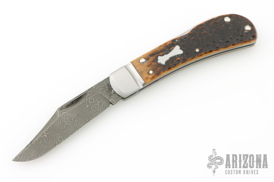 Home Products TB612020 Lanny's Clip Lockback - Damascus and Molasses Jigged Bone