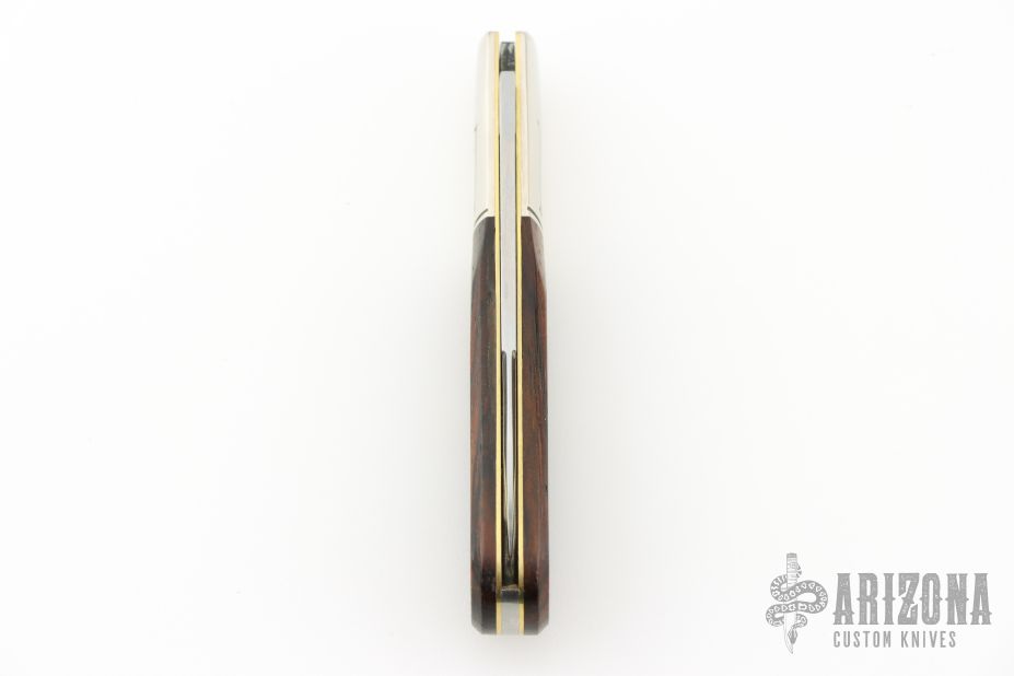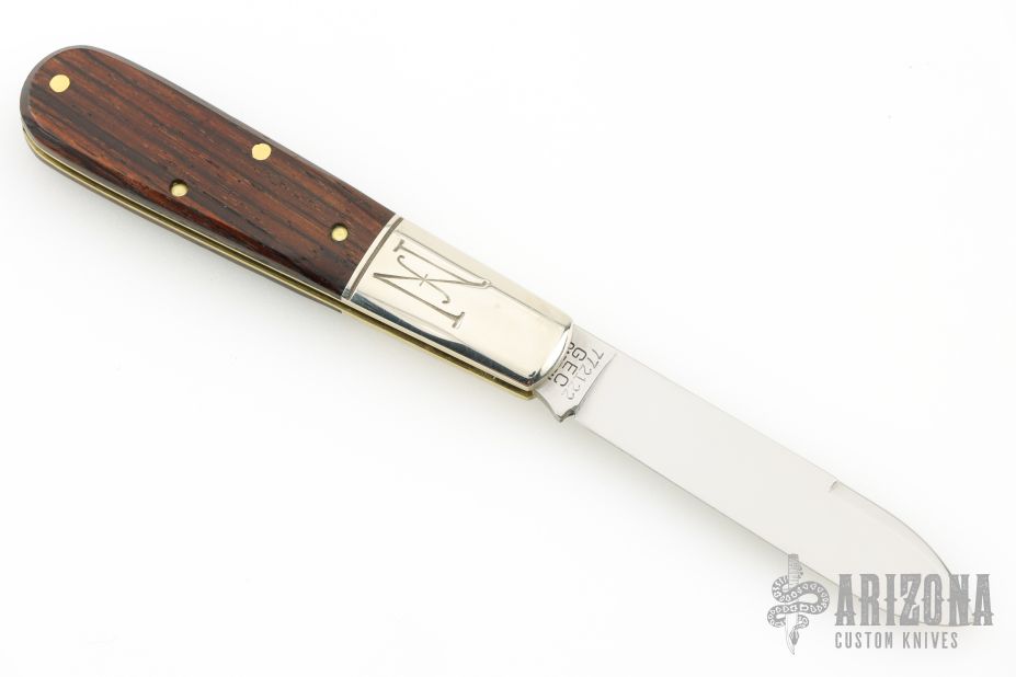 This slipjoint by Great Eastern Cutlery features a mirror finished blade with a nail nick. The handle has nickel silver bolsters and liners, cocobolo covers, stainless steel spring. Has half stop. Comes with the original tube. Excellent condition.
