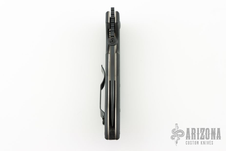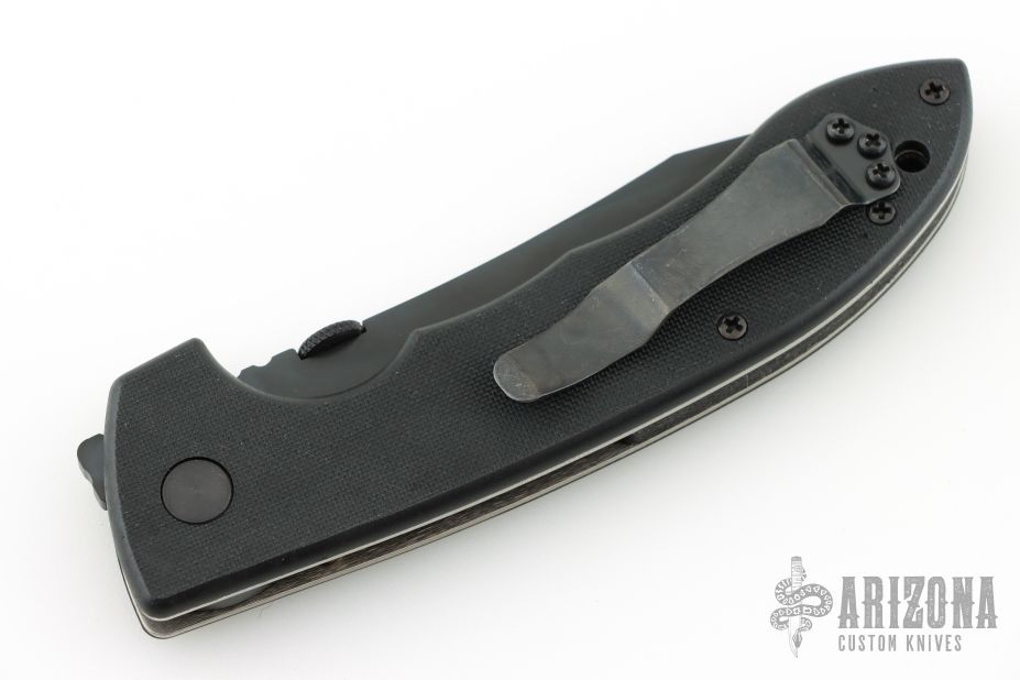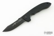 This CQC-8 was from a set with a Surefire C2-EM Centurion flashlight.  Has a black blade with thumbdisc and notched thumbrest. The handle has black G-10 scales, titanium liners, black G-10 backspacer and a tip up black stainless clip. Excellent condition. #0731. Comes with original box and papers.