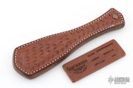The SES Sap is a twist on a true classic.  Combined cowhide with 9 ounces of lead to produce these gorgeous saps.  The SES sap is is 8 3/8" long and weighs in at 11 ounces. Dyed in a deep rich brown and sewn with white stitch.  Excellent Condition.  Coems with leather COA dated 10/23