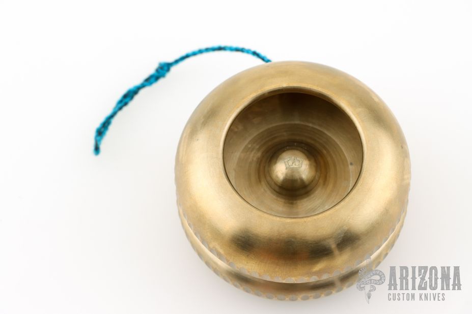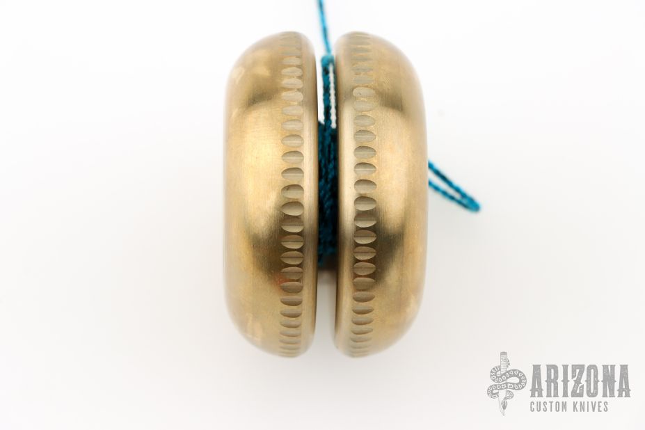 This YOYO by Blackside Customs is made of brass. The two halves unscrew. Excellent condition.