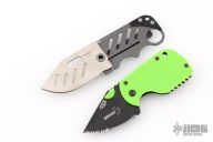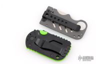 Though it is not touted as a zombie killer, the Boker Plus Subcom Plus Zombie Green handles features an AUS-8 stainless steel blade with ambidextrous toxic green thumb stud with reversible pocket clip which could double as a money clip. The compact size of the Boker Plus Subcom. The Zombie green handles are FRN reinforced nylon with palm index ramps for excellent grip. The blade locks up via slip joint.