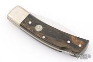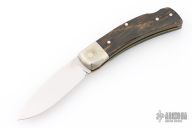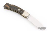 This vintage lockback folder by Smith and Wesson features mirror finished blade. The handle has nickel silver bolsters, wood scales, brass liners, stainless steel rockerbar. Has some light scratches. Excellent condition. Comes with original box and papers.