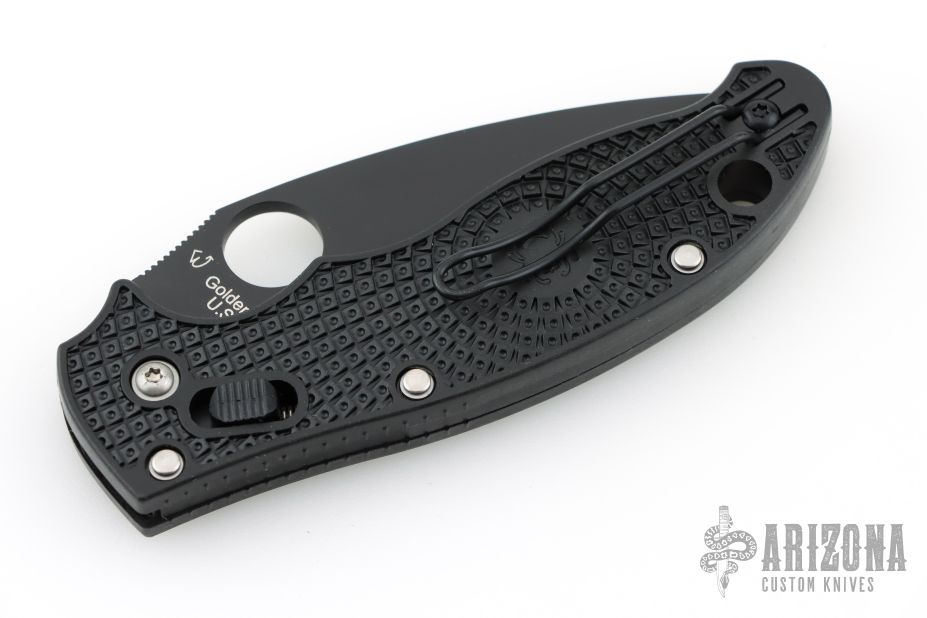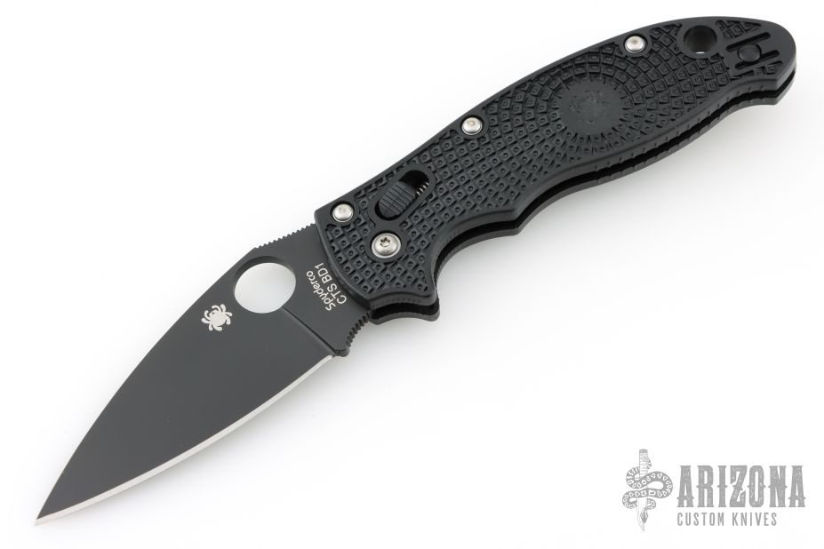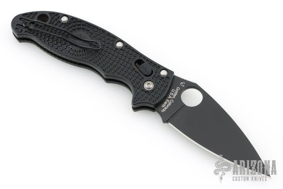 This axis-lock Manix 2 from Spyderco features a black, plain edged blade with SpyderHole and notched thumbrest. Textured black scales. Wire pocket clip is adjustable for ambidextrous left or right hand carry. Includes the original box. New condition.