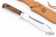This White Hunter by Puma is the ultimate outdoorsman’s knife, originally designed by African professional hunters. It features a curved blade for cutting, slicing and skinning and a strong back edge for hacking. Handmade by skilled craftsmen with wood scales. #42606 on guard. Made in the 2nd quarter of year 1966 . Comes with original brown leather sheath and box. Has some light scratches, excellent condition.