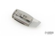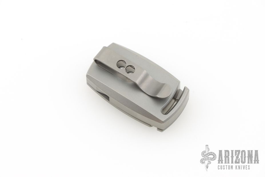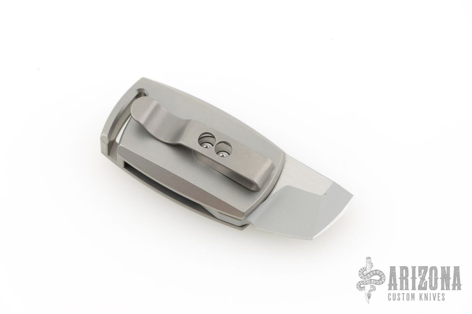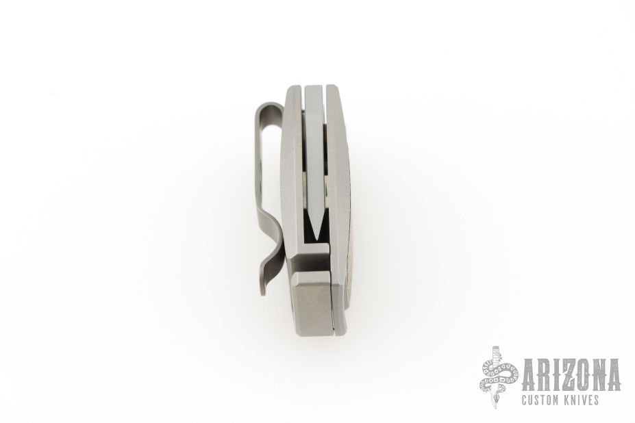 The handle is precision-machined from titanium, offering lightweight strength in a sleek silhouette. It features a removable pocket clip, and for those who prefer clipless carry, a matching filler tab is included. A glow-in-the-dark inlay in the pivot area on the front side adds functional flair—easy to find in low light, hard to ignore in any setting.